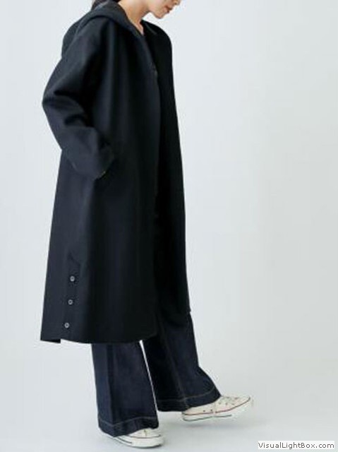 ソフトで柔らかな風合いのある軽くて暖かなウール混素材を使用したフーデッドコート。